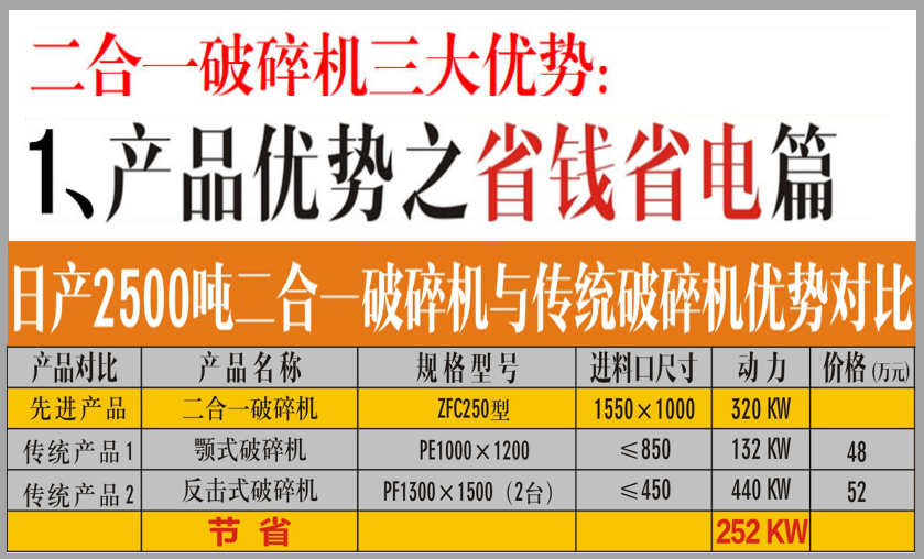 新型高效節(jié)能型二合一破碎機(jī)的八大優(yōu)勢(shì)特點(diǎn):