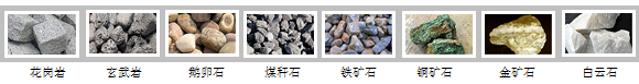 河卵石、花崗巖、玄武巖、鐵礦石、石灰石、石英石、輝綠巖、建筑垃圾、鐵礦、金礦等