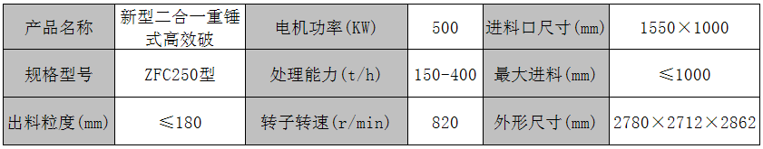 ZFC250型新型高效節(jié)能型二合一破碎機(jī)術(shù)參數(shù):