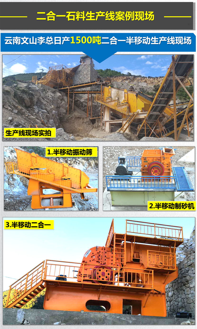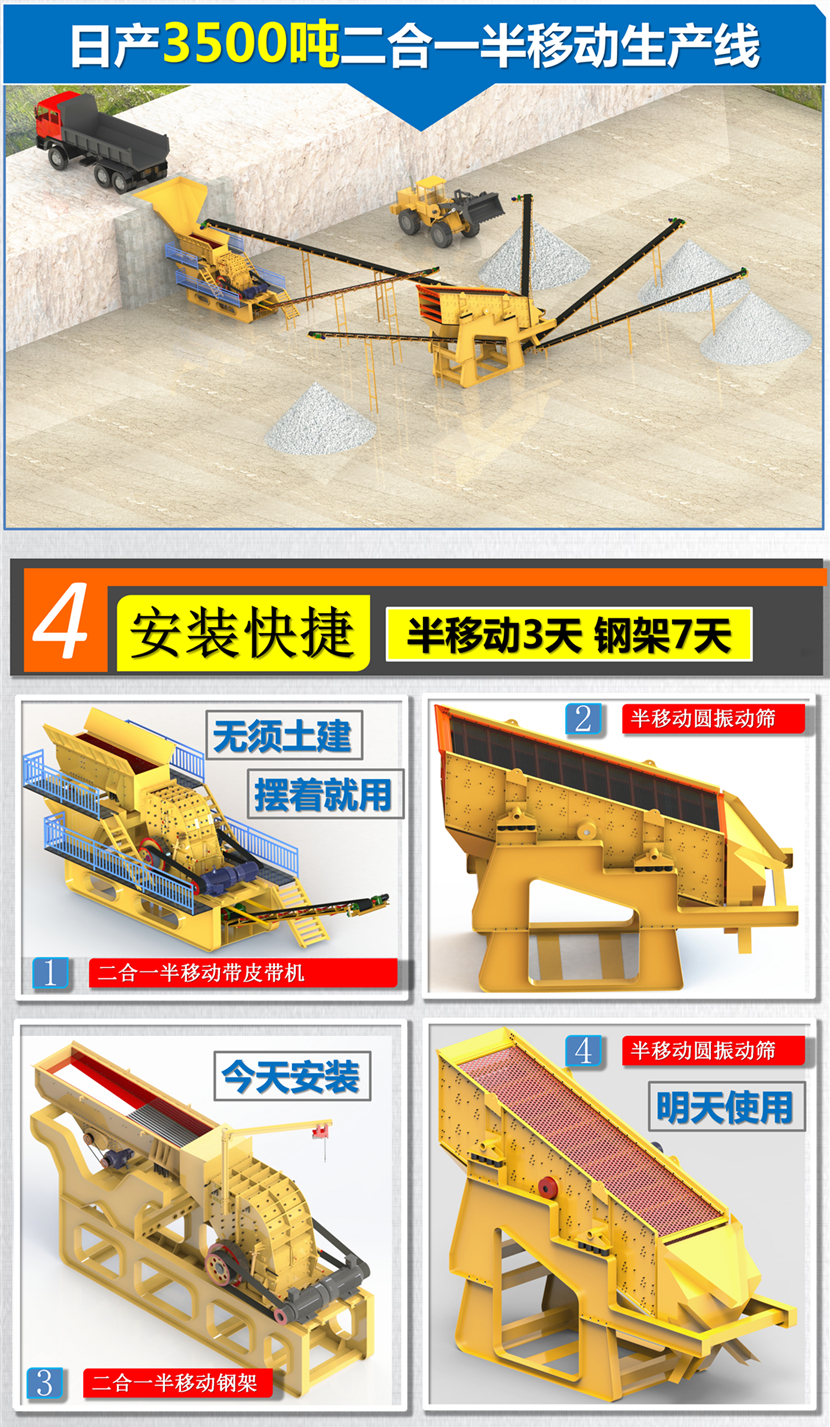 2、可作二破用,大型顎破選配小型二合一破碎機(jī),作新型反擊破用。