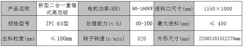 ZFC60型新型高效節(jié)能型二合一破碎機術(shù)參數(shù):