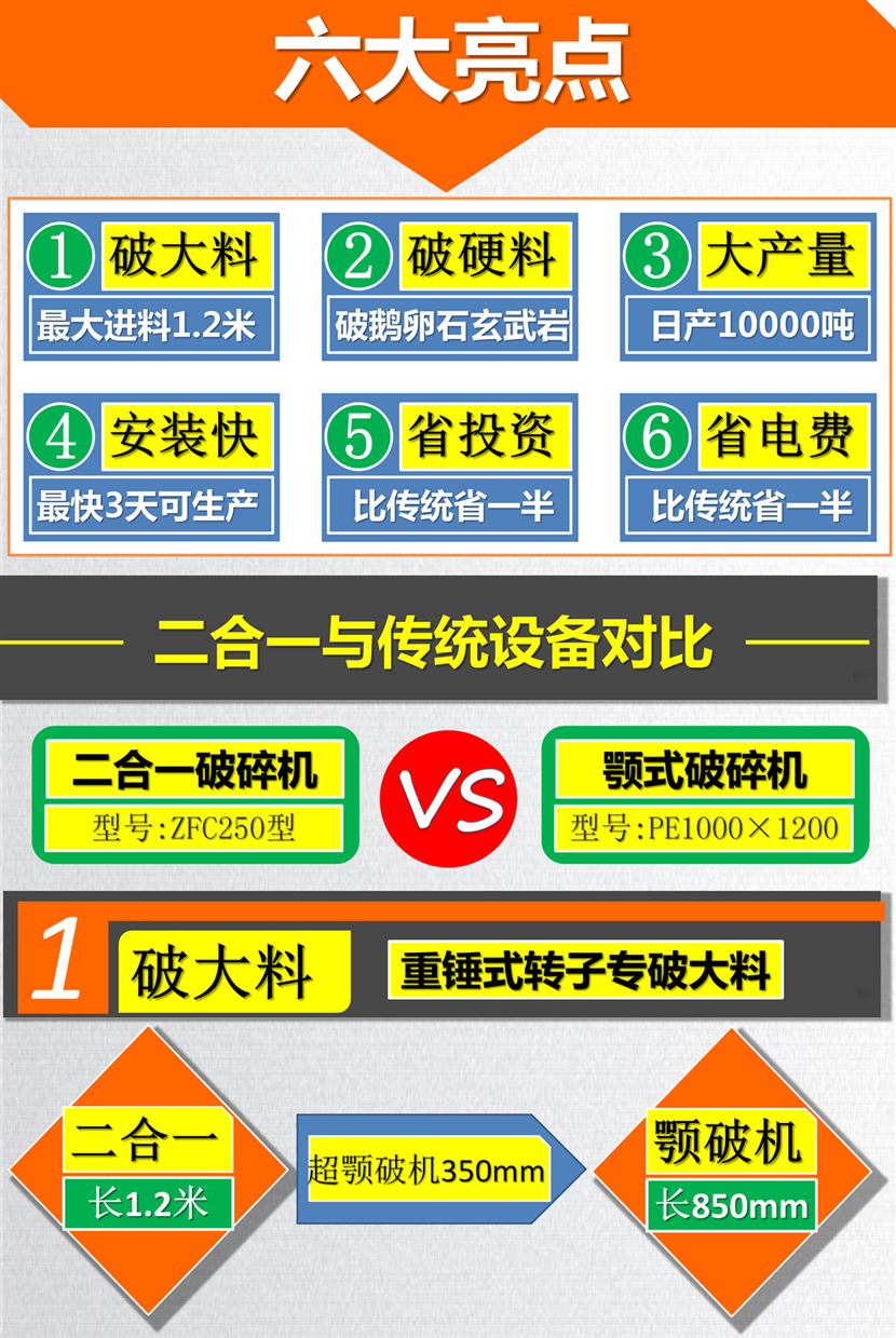 新型高效節(jié)能型二合一破碎機(jī)的八大優(yōu)勢特點(diǎn):