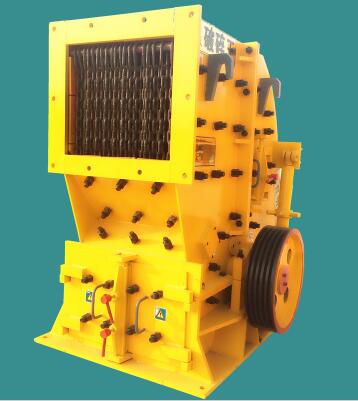 利用高速旋轉(zhuǎn)的錘頭敲擊石料,并將其拋向內(nèi)壁和篦柵,同時飛粒相互撞擊,進行破碎。由轉(zhuǎn)子、篦柵和鑲有襯板的機殼等組成。有單轉(zhuǎn)子及多轉(zhuǎn)子,單排及多排錘頭等種類。轉(zhuǎn)子一般由圓盤與轉(zhuǎn)軸連成一體作為芯子,幾個錘頭鉸裝于圓盤周沿。主要技術(shù)參數(shù)為轉(zhuǎn)子尺寸。適用于中碎、細碎中等硬度的石料以及脆性物料,如石棉、石灰石、石膏、爐渣等,很少用于粗碎。